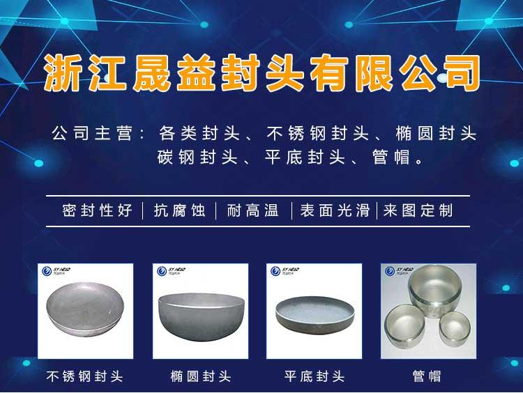 浙江晟益封头为您提供各类封头:不锈钢封头,椭圆封头,锥形封头,弓形封头,平底封头,碳钢封头,管帽等封头产品,多年来受业界好评。具体规格厚度和价格请详细咨询,欢迎广大客户前来我司参观和选购